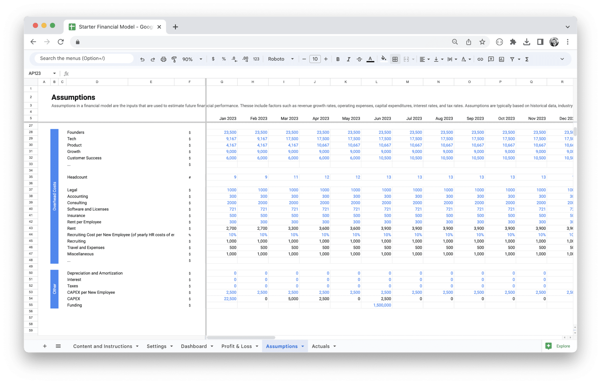 The heart of your financial model lies in the assumptions you make. Assumptions are essentially educated guesses about how things will play out in your business. While you won’t be able to predict everything with absolute certainty, clear and realistic assumptions form the foundation for all your financial projections.