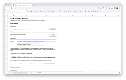 The model also helps you define key financial metrics such as gross margin, customer acquisition costs (CAC), customer lifetime value (LTV), and break-even points. These metrics help you track your startup’s performance and understand what levers you need to pull to reach profitability.