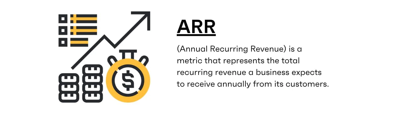 ARR, which stands for Annual Recurring Revenue, is a critical metric for measuring the financial health of a subscription-based business model. ARR represents the total recurring revenue that a company expects to receive annually from its customers based on the current subscriptions. ARR helps businesses forecast revenue, evaluate business performance, and track growth.